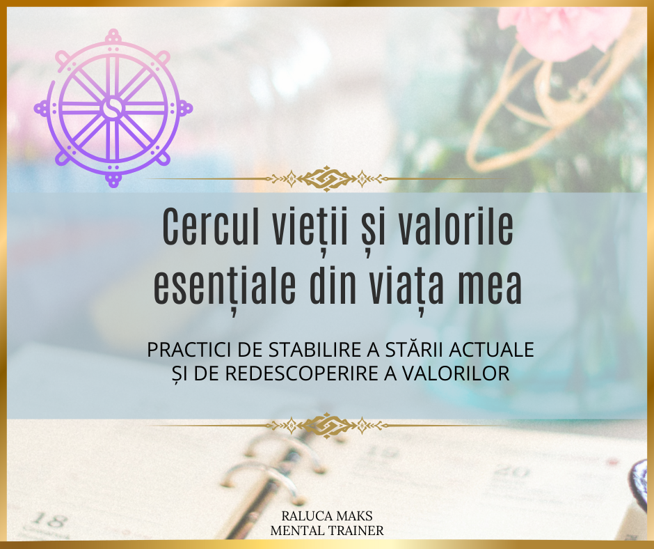 ⭐ Bonus #3 „Cercul vieții și valorile esențiale din viața mea” – Work-book cu exerciții de stabilire și redescoperire a valorilor personale și identificare a stării actuale prin „cercul vieții”.  Valoare: 33 lei