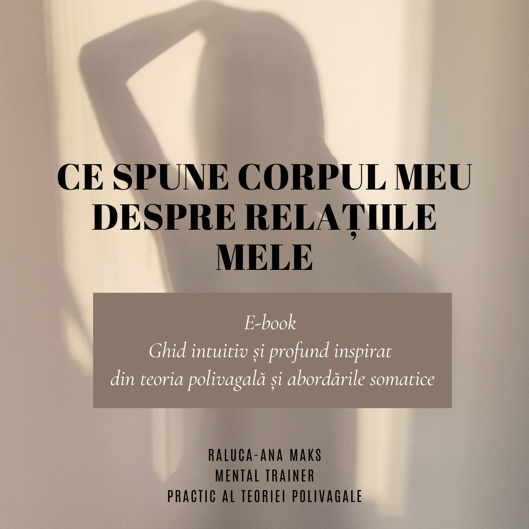 Ebook-ul „Ce Spune Corpul Meu Despre Relațiile Mele?” este busola ta blândă către înțelegerea profundă a modului în care sistemul tău nervos îți dictează răspunsurile în fața iubirii, stresului și conflictului. Inspirat din Teoria Polivagală a doctorului Stephen Porges (aplicată practic de Deb Dana) și din viziunea somatică a unor experți precum Gabor Maté, Bessel van der Kolk și Peter Levine, acest ghid te scoate din cercul vicios al reacțiilor automate și te așază în scaunul șoferului pentru a-ți regla emoțiile.